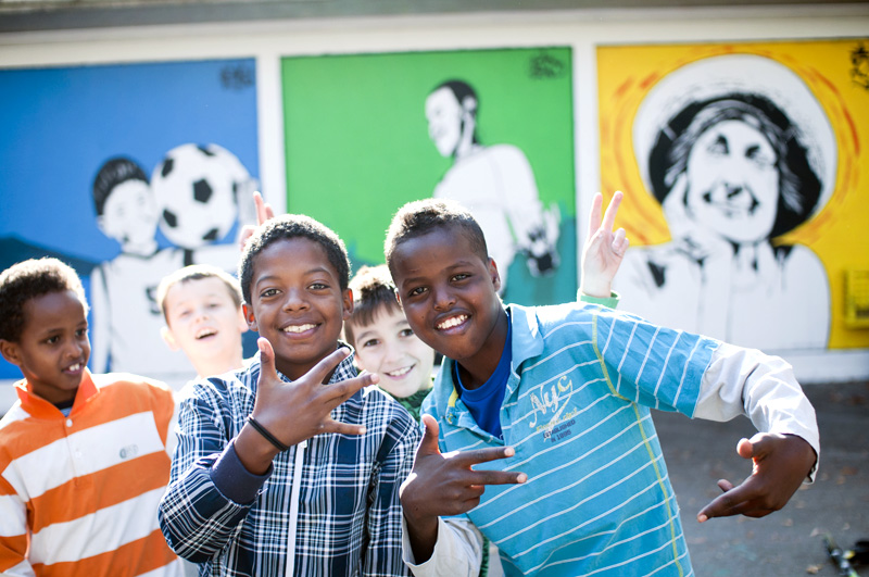 I chose to honor the people frequenting this place daily and focused on the three main generations: kids, teenagers and the elderly. I used the natural triptych separation of the wall and painted it with brushes, pencils and simple outdoor water paint.